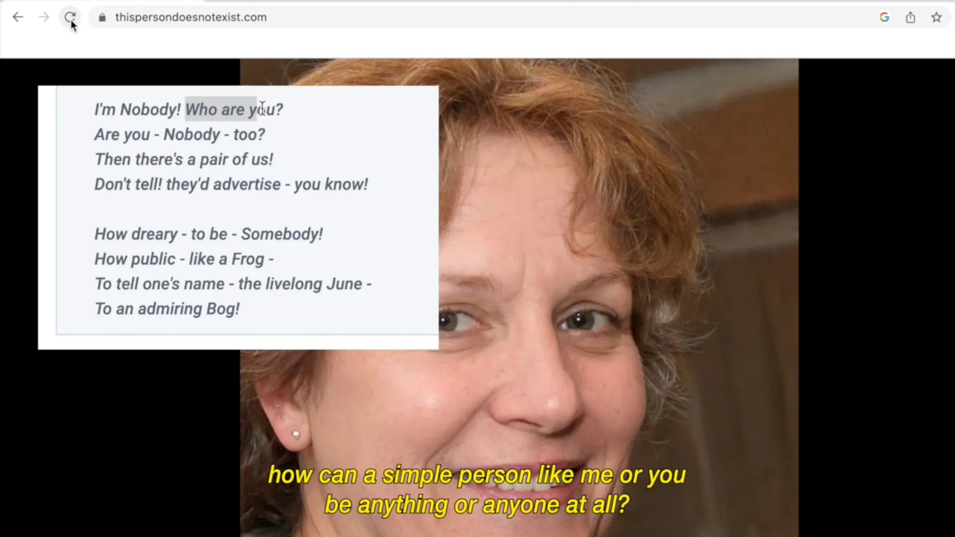 To Know Me Is To Know You is about the disabled community, the mentally ill, and the neurodivergent individuals that all feel part of this community. The film is told from real perspectives and viewpoints of the community.