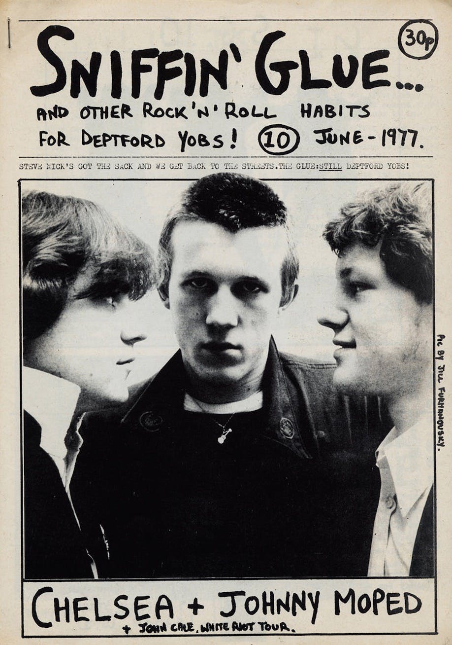 Sniffin’ Glue was a monthly punk Zine started by Mark Perry in July 1976 including photographs and show reviews about the Punk scene in the United Kingdom. It was created haphazardly with barely any consideration for grammar and layout. The initial issue only sold 50 copies, but circulation soon increased to 15,000. It was released for about a year but in that time it had helped to establish DIY punk aesthetics.
