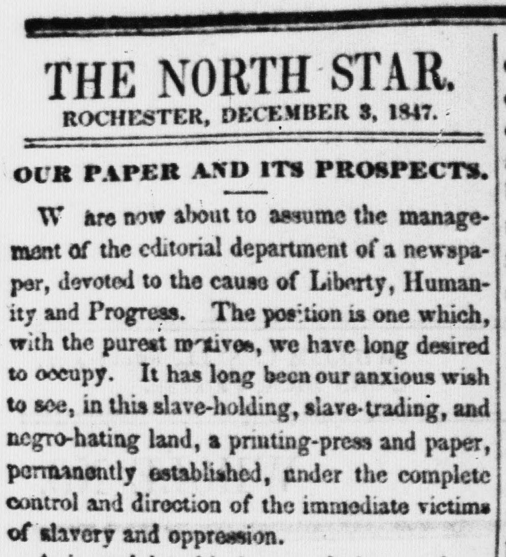 Frederick Douglass’ abolitionist newspaper, The North Star addressed discrimination in American society. First published in Rochester, New York on December 3, 1847, Douglass felt that African American authors, editors, and orators should have their own paper with which to share their voices.