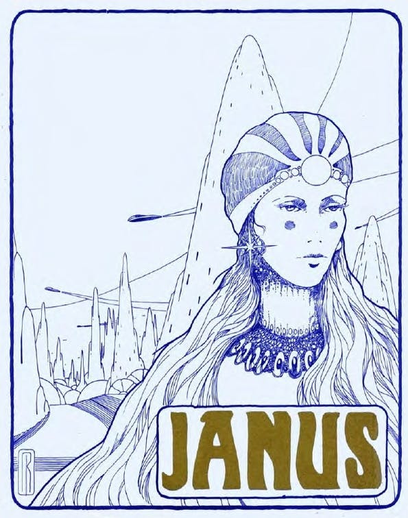Janus, (later called Aurora,) was a science fiction feminist Zine created by Janice Bogstad and Jeanne Gomoll in 1975. It contained short stories, essays, and film reviews. Among its contributors were authors such as Octavia Butler, Joanna Russ, Samuel R. Delany, and Suzette Hayden Elgin. It was the first Zine to discuss feminist issues.